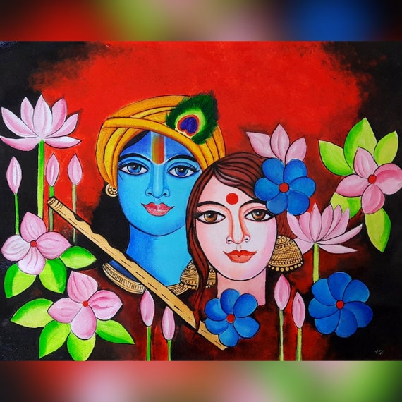 Buy Radha Krishna Contemporary Art Radha Krishna Painting Indian Art Radha Krishna Contemporary Painting Hindu God Art Home Decor Krishna Online In India Etsy